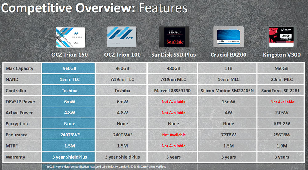 (OCZ Trion 150 competitive SSD overview. Larger image here.)