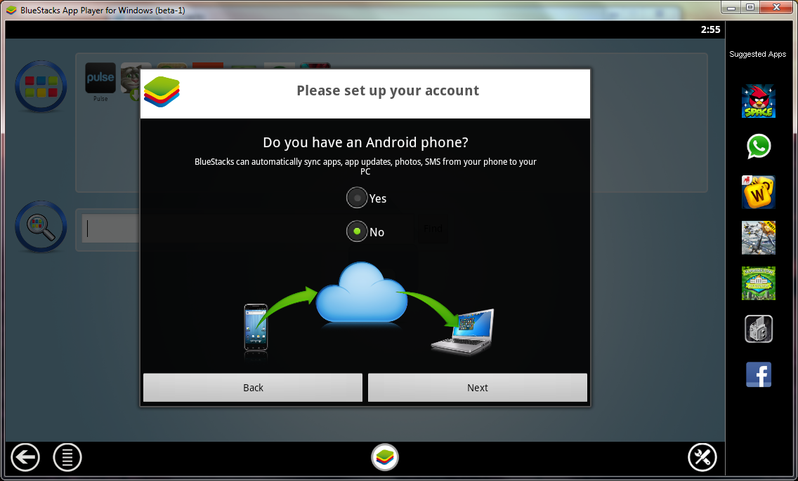 The installation process was surprisingly smooth and straightforward. BlueStacks downloaded various setup files from its servers spanning less than 100MB, and the actuall installation process took no more than 3 minutes on our fast ultrabook SSD (SandForce SF-2281). At the end of the installation process, we were prompted with an option to synchronize BlueStacks with an Android device with automatic synchronization support.