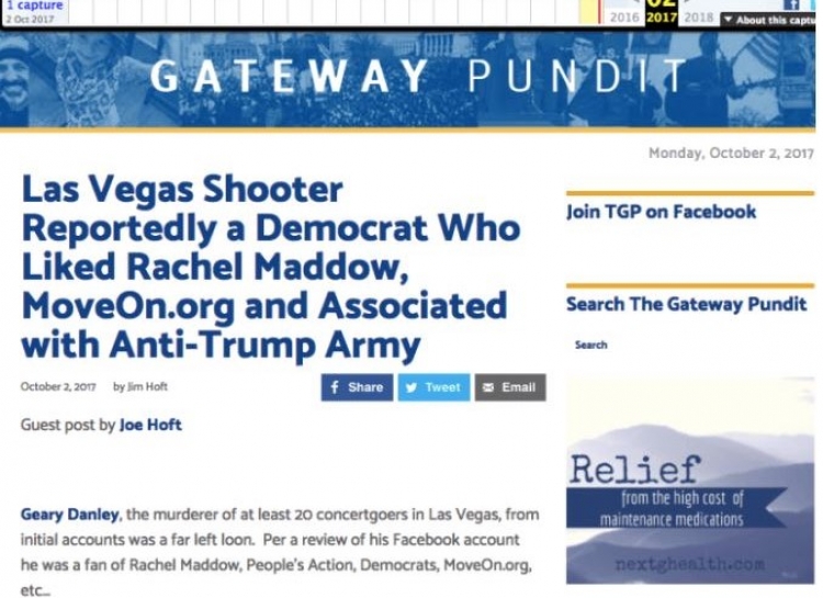 BuzzFeed's Ryan Broderick found that Google's "top stories" results surfaced 4chan forum posts about a man that right-wing amateur sleuths had incorrectly identified as the Las Vegas shooter.