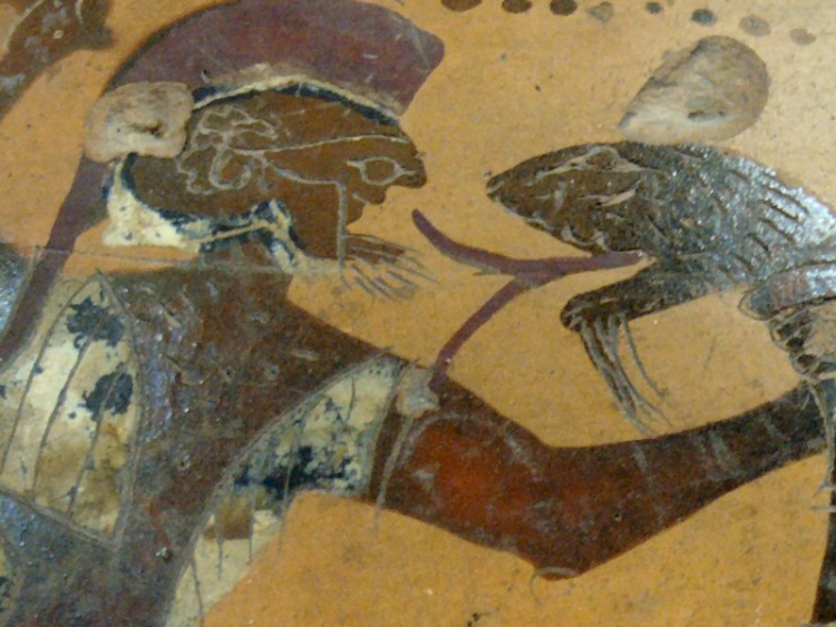 So what about Hercules? Hercules is the Roman counterpart of the Greek god Heracles. According to the Encyclopedia Brittanica, his first act was to strangle two serpents sent to kill him in his cradle. We can only speculate what that might mean. The picture here is of a Greek hero slaughtering a serpent, or dragon.