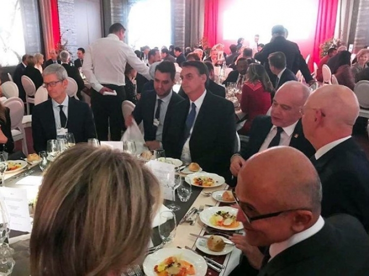 Tim Cook and Satya Nadella were attending a dinner at the annual gathering of the world's elite in Davos, Switzerland. The event was held at the Morosani Hotel in honour of Bolsonaro — who took office in October — and was attended by other business leaders and politicians.