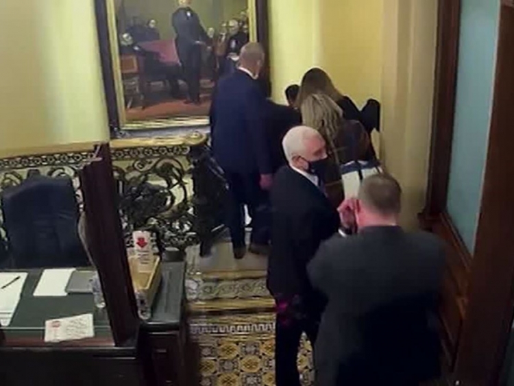 A picture has tipped up of the attempted coup showing the mob coming within 100 feet of then-Vice President Mike Pence and his military aide who was carrying a second nuclear football.
