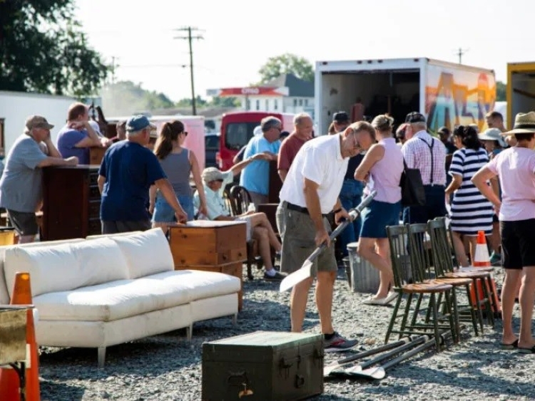 A conference table made from reclaimed wood closed at nearly $10,500.