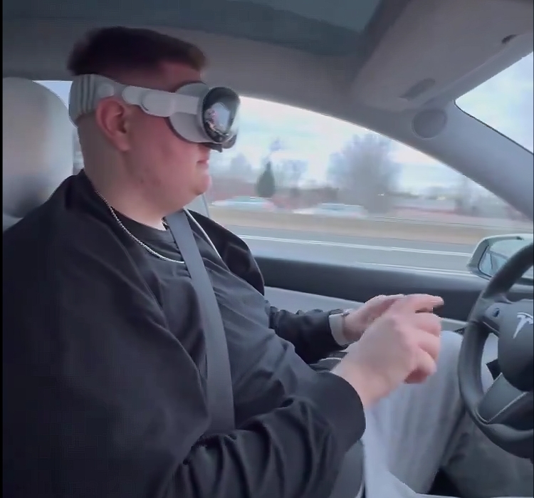 The idiot, who calls himself Dante, proudly posted a video on X behind the wheel, wearing his iWatch and carrying his iPhone while wearing the Apple Vision Pro, with an iPad giving him directions. His driving an overpriced Tesla also showed how clever he was.