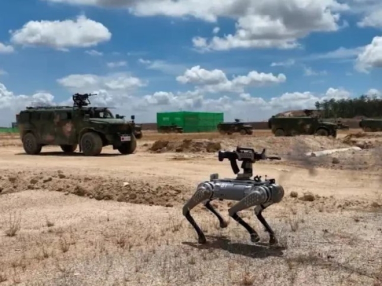 During recent military exercises with Cambodia, China's military showed off a robot dog with an automatic rifle affixed to its back.