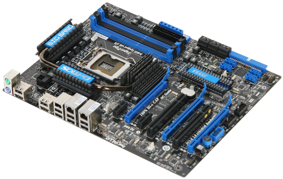 Another new thing about MSI's P55 Trinergy is the QuantumWave audio processing, which supports the latest THX TruStudio PC and Creative's EAX Advanced HD 5.0. The rest of the features include 100% Hi-c Caps, MSI's OC Genie and SuperPipe, an 8mm heatpipe cooling design.