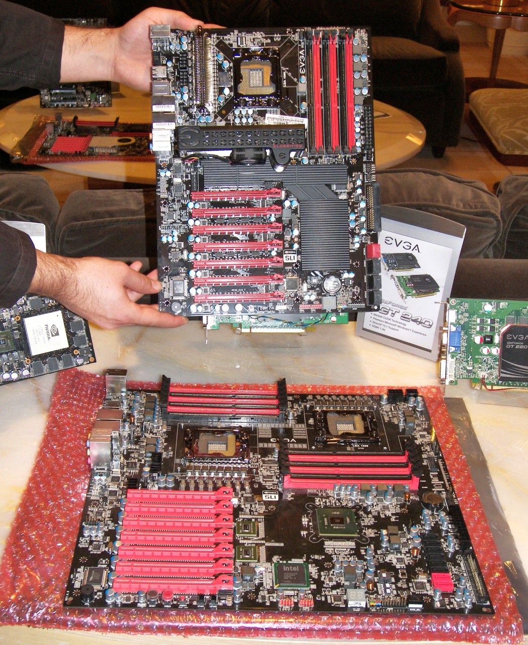 able to fit on this board. We even brought some Radeon HD 5970s to EVGA’s suite