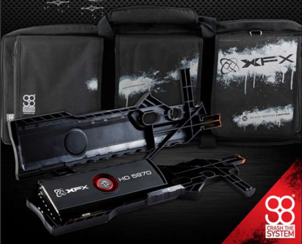 We finally managed to score more pictures of the upcoming XFX HD 5970 Black Edition Limited 4GB card that XFX has been talking about for quite some time. The card will be shipped in a small rifle-shaped case with three magazine pockets that will hold the rest of the accessories and this one doesn't lack anything.