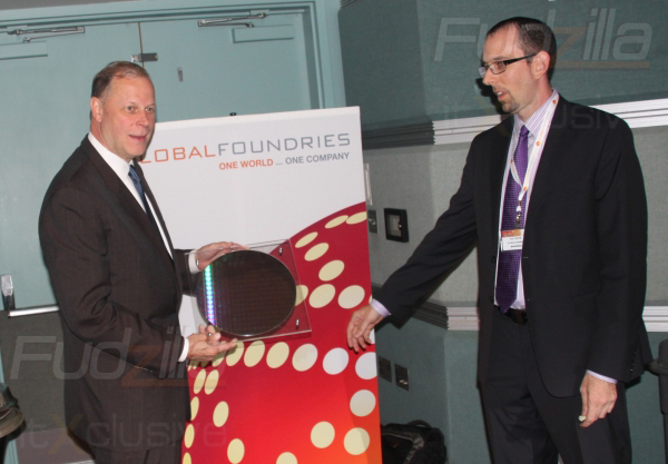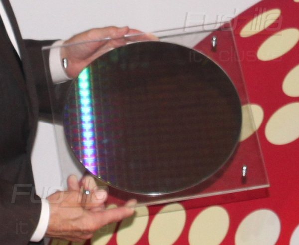 Both are nice guys but we are sure that you prefer seeing a 300mm wafer rather than looking at two 6 foot 4+ chaps. We can tell you that the wafer has a quad-core CPU with a graphics core, and that the samples behind wafer are real.