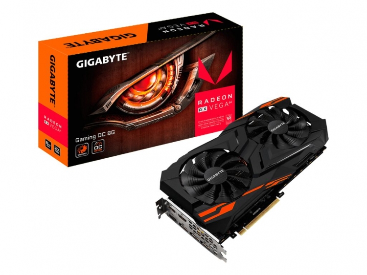 Although only the RX VEGA 64 GAMING OC 8G is listed on Gigabyte's website, it appears that both the custom RX Vega 64 and the custom RX Vega 56 from Gigabyte will share the design. Speaking of the design, Gigabyte went all-in with a custom-design PCB with 12+1-phase VRM, drawing power from two 8-pin PCIe power connectors, ultra durable design with high-grade chokes and capacitors, and a factory-overclock which puts the GPU base clock at 1276MHz and the GPU Boost clock at 1560MHz (1247/1546MHz reference).