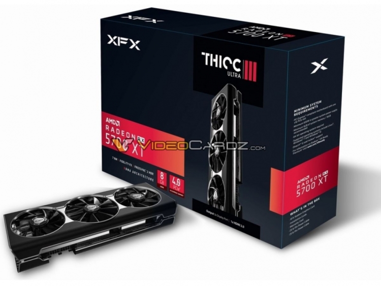 In addition to a hefty cooler with three big fans, the XFX RX 5700 XT THICC III Ultra, which was spotted by Videocardz.com, also has pretty high clocks, which makes it one of the highest clocked custom RX 5700 XT cards on the market, ticking at 1810MHz base and 1935MHz GPU Boost clocks (Game Clock), and peak clock of 2025MHz.