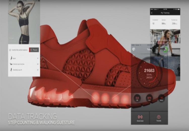 Apparently the sneakers can also be used as a mobile game controller where you step back and forth or jump around and see your movements reflected in the motion-controlled game.