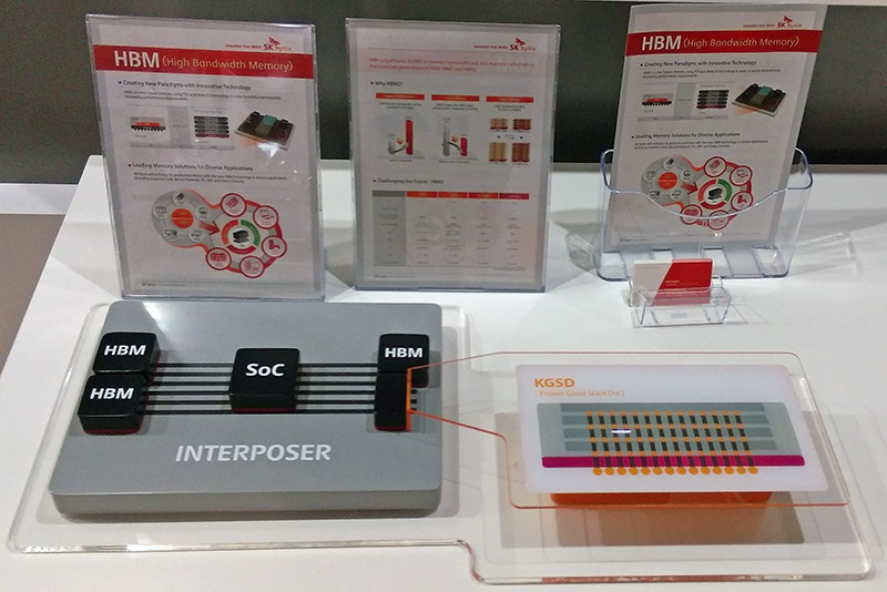 HBM uses Trough Silicon VIA (TSV) technology, as it is stacking the memory cores on top of each other on the same base die. It is amazing that SK Hynix manages to make these layered interconnections trough the silicon. It’s one thing to read research papers about it, but seeing the finished product is something else. As you can see, HBM chips will be significantly smaller than GDDR5 and DDR3 chips.