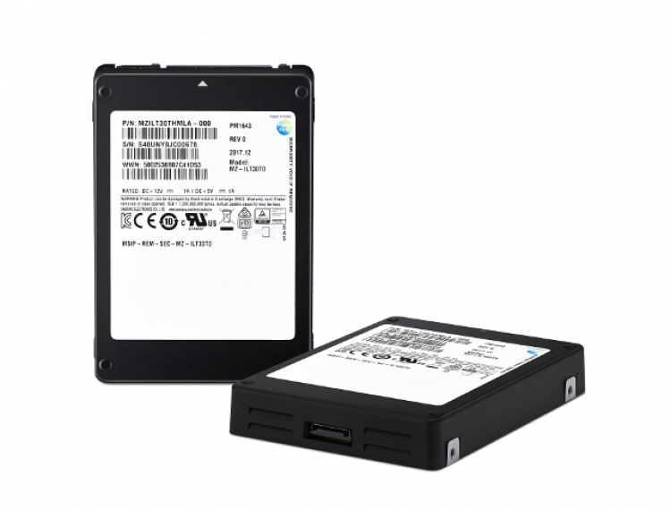 Dubbed the PM1643, it is designed for next-generation enterprise storage systems and uses Samsung’s V-NAND technology with 64-layer, 3-bit 512-gigabit (Gb) chips, the 30.72 terabyte (TB) drive delivers twice the capacity and performance of the previous 15.36TB high capacity lineup introduced in March 2016.