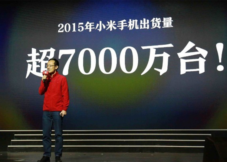 A photo featuring Xiaomi President Lin Bin which was posted on the company's microblog with the banner: "2015 Xiaomi cellphone shipments: Over 70 million!"