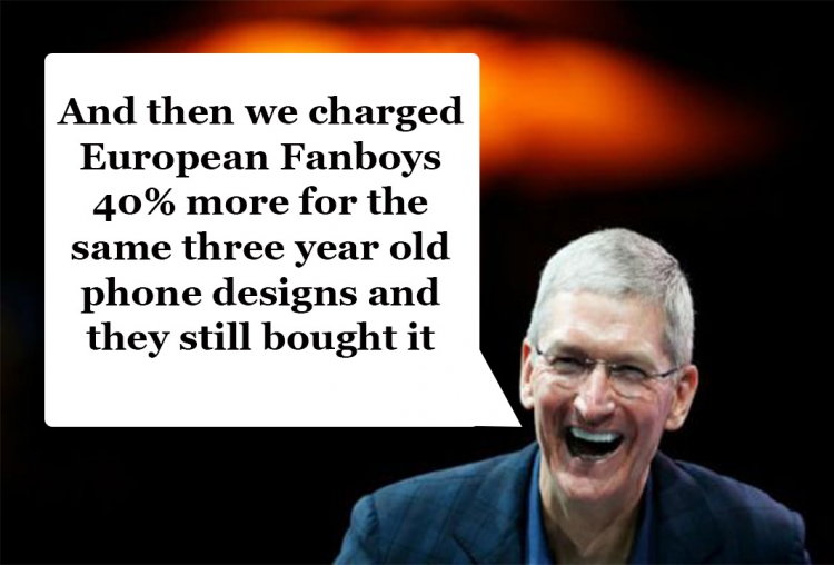 You would think if you were losing sales and trying to sell a three-year-old phone design with an undersized screen in a competitive market you might like to at least try to make it a bit cheaper. We guess Apple does not think that way – either that or Tim Cook had a dodgy takeaway once in Europe and hates Europeans.