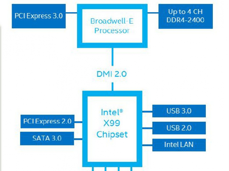 The eight-core version will have up to 20 MB Intel smart cache and it will support Turbo boost 2 technology. Following tradition, Broadwell-E will support Hyperthreading technology as well as overclocking with Extreme Edition X and K SKUs. Intel calls this processor line HEDT (High End DeskTop processor line) and the new processor supports 4-channel DDR4 2400 memory with 1 DIMM per channel.