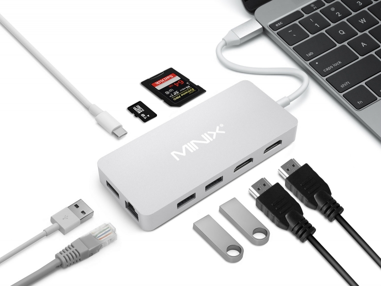 The aluminum finished adapter comes with two HDMI ports with simultaneous dual display output, both supporting up to 4K @ 30Hz and working in both mirror and extend mode. This is the big innovation as the previous version of Minix Neo C has only one.