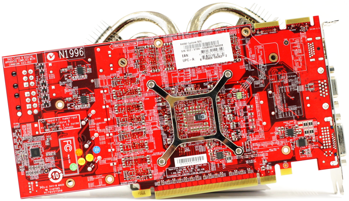 Besides the HDMI out, our R4890 Cyclone SOC card features dual-link DVI and D-Sub outs.