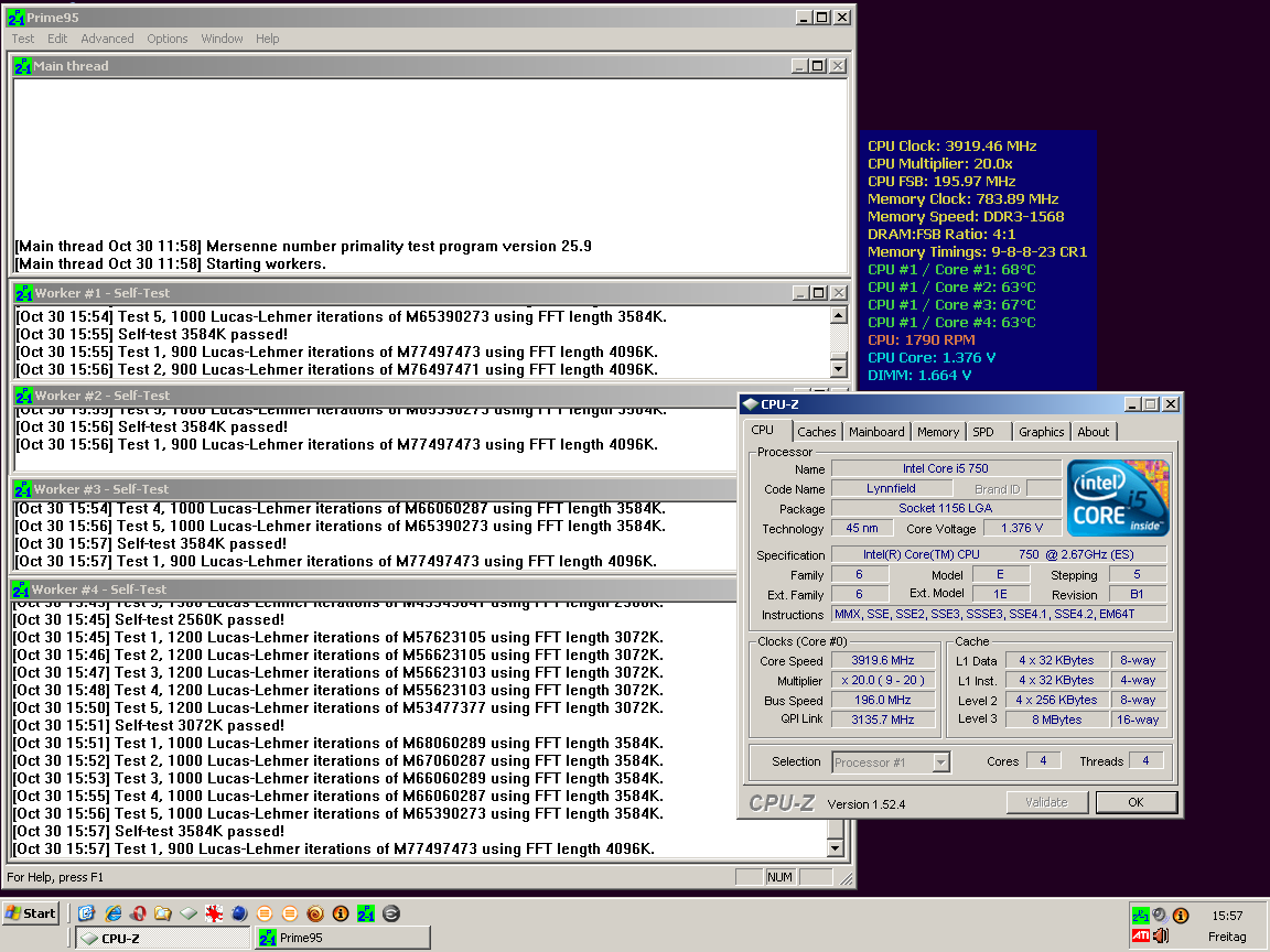 This is the only board which does not manage to overclock to 200MHz virtual FSB. 196MHz was the maximum stable frequency which resulted in a 3.92GHz clock: