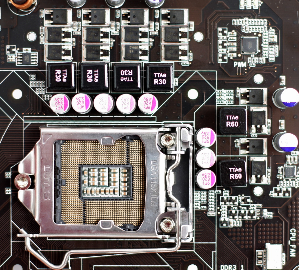 The first thing you notice is that this board is not an high-end board, it's entry level. With the labeling as "Black Series" Elitegroup suggesting this is better than a normal board. But we are disappointed. While it features an all solid cap design, it does not feature all solid inductors.