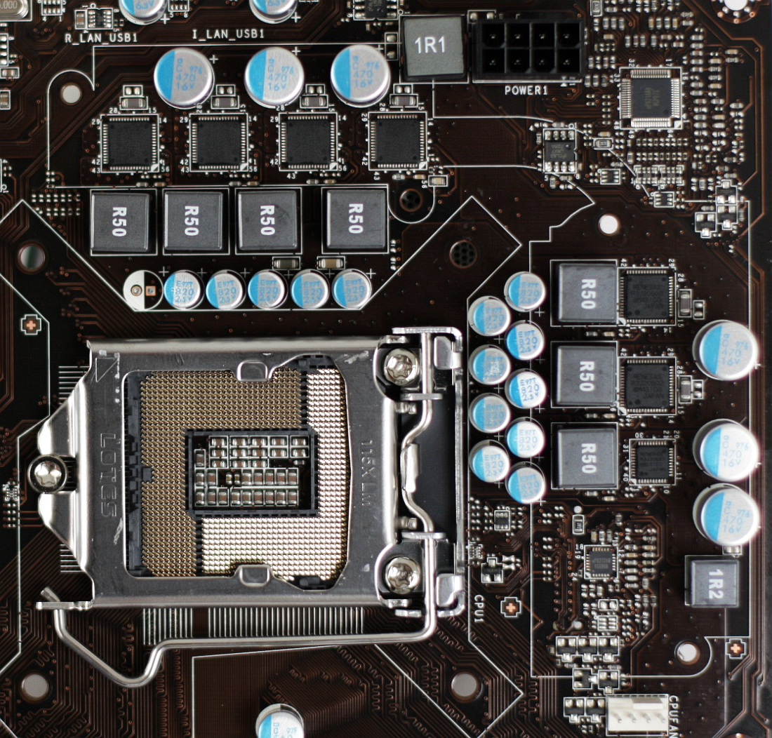 The memory slots are at a safe distance to the CPU socket but the power connector is really close. That is because MSI included a new feature called "V-Check" where you can take measurements of some voltages on the board if you have a multimeter.