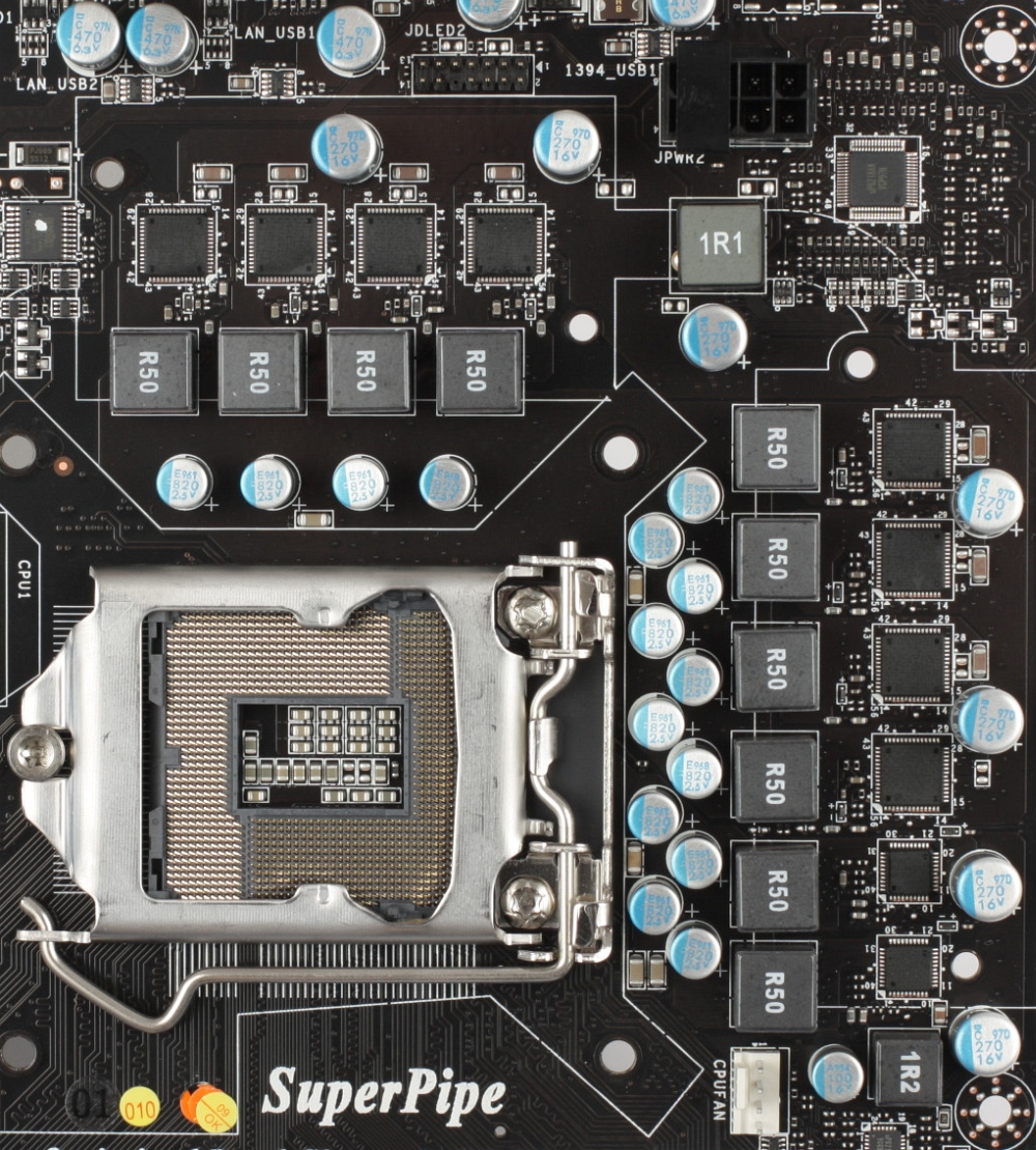 The VRM is an analog 6-phase design and as expected it features highly integrated low RDS-ON MOSfets. For some reason MSI is using uPI VRM controllers. It seems this company did impress MSI and we have nothing negative to report about this change. MSI is the leader concerning power-consumption. Even under load MSI shaves off some bucks of your power bill.