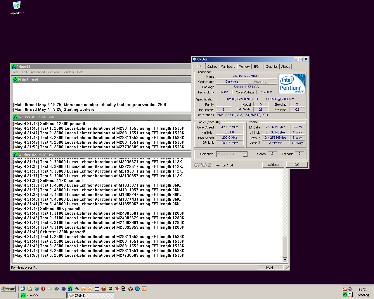 Intel G6950 @ 4.2GHz, Offset voltage +0.1500V: