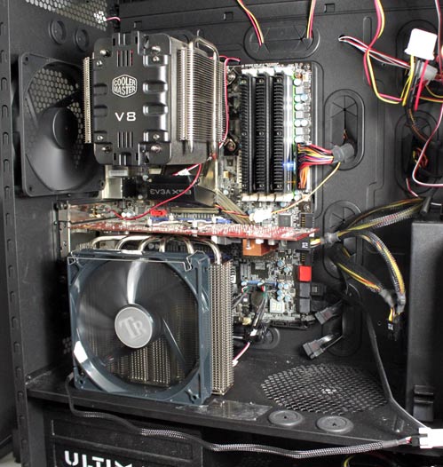 Our first test was a practical one – mount the cooler as fast as possible without changing anything in our test rig. Although cooling performance will not be as great if Spitfire is facing downwards, we still chose to do so because taking off CoolerMaster’s V8 cooler would’ve taken more time.