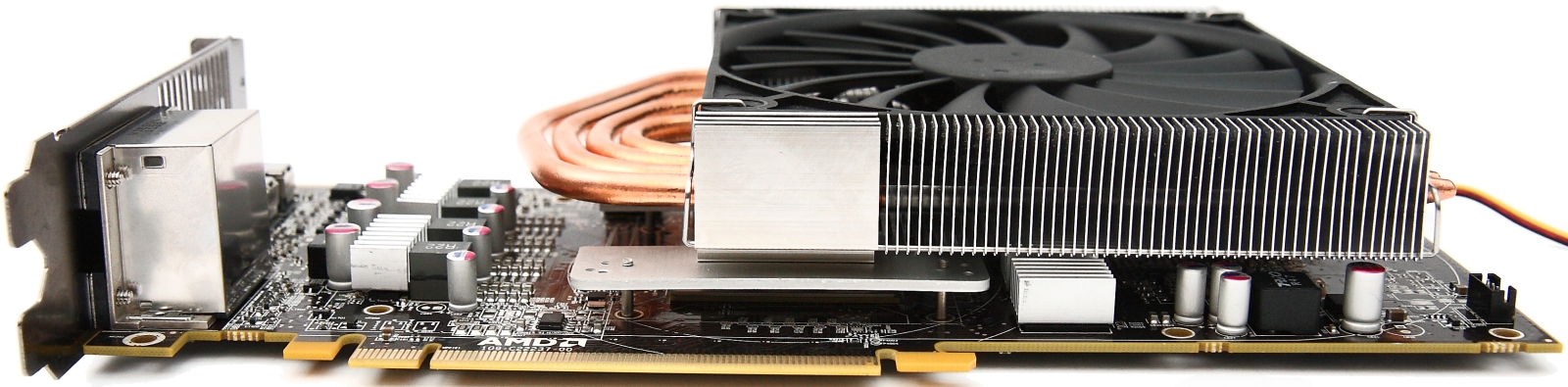 Even as two slot design, the card now weights a ton less, because only the GPU plate and the heatpipes are made of cooper, while the rest is made from aluminum. The cooler weights only 435g and even with the heatsinks you should not exceed half a kilogram.