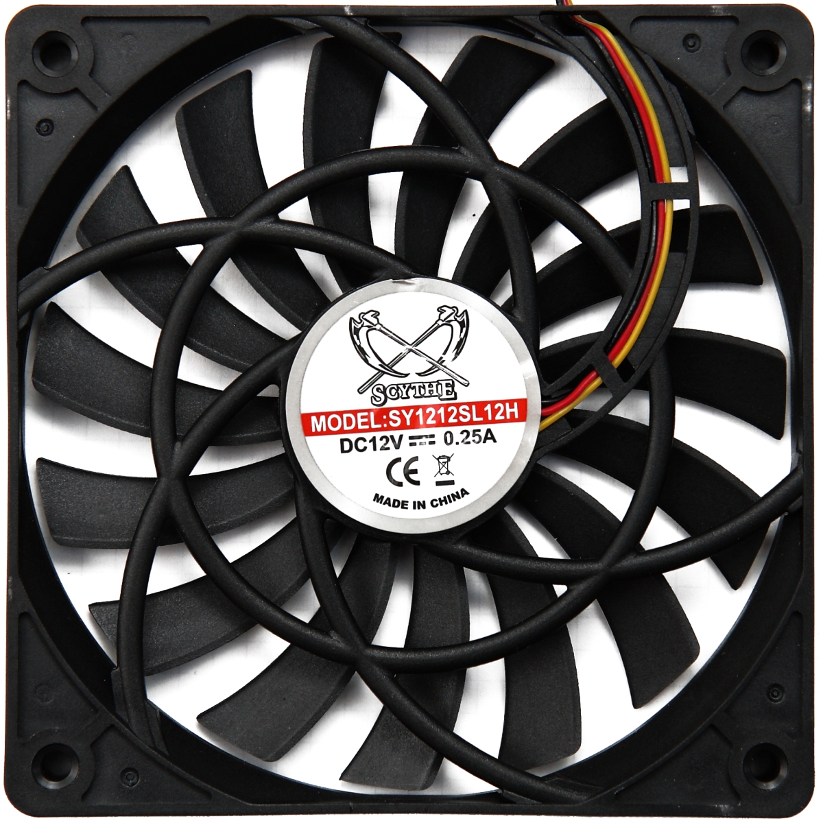 If you are as annoyed as we with the fan-controller, you can use any other 12mm slim fan to either keep the two-slot design or fit a 25mm fan with cable straps which will improve the airflow greatly. As you can see the identical fan without the controller is available for about €6,30. Both fans rotate up to 2000rpm and the airflow is up to 78m³/h or 45.5CFM.