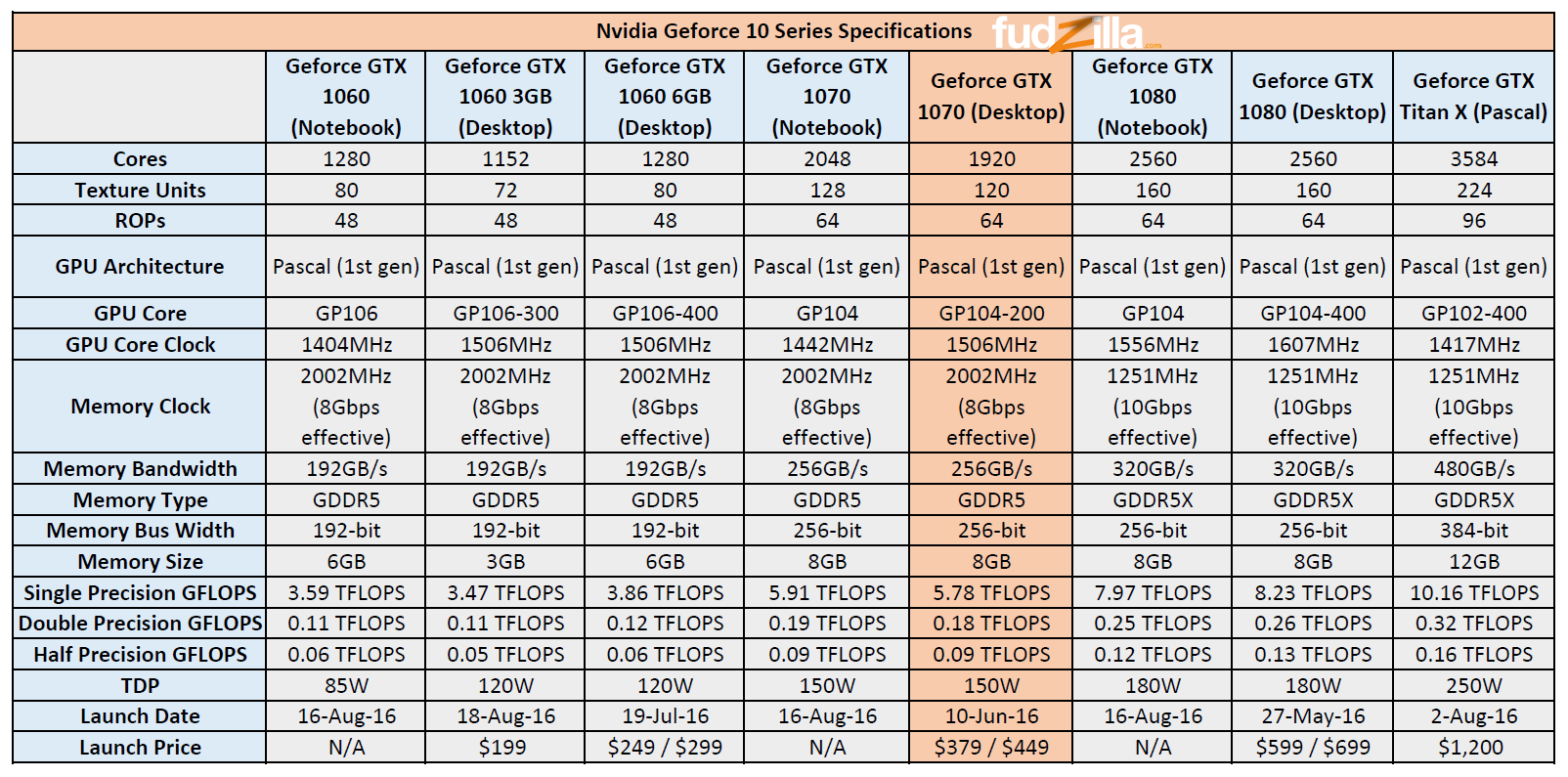 It is important to note that Nvidia disabled 5 SM clusters in the Geforce GTX 1070 desktop card and then released the mobile Geforce GTX 1070 variant for notebooks a few weeks ago with 16 SM clusters enabled. The mobile version brings the core count up to 2048 cores with 128 texture units. As some sites point out, however, the benefit of an additional SM cluster is countered by having lower core clock frequencies by about 4 percent over the desktop version. But in terms of peak gigaflops, the notebook Geforce GTX 1070 variant will still deliver 6.74 teraflops at lower frequencies versus 6.46 on desktop.