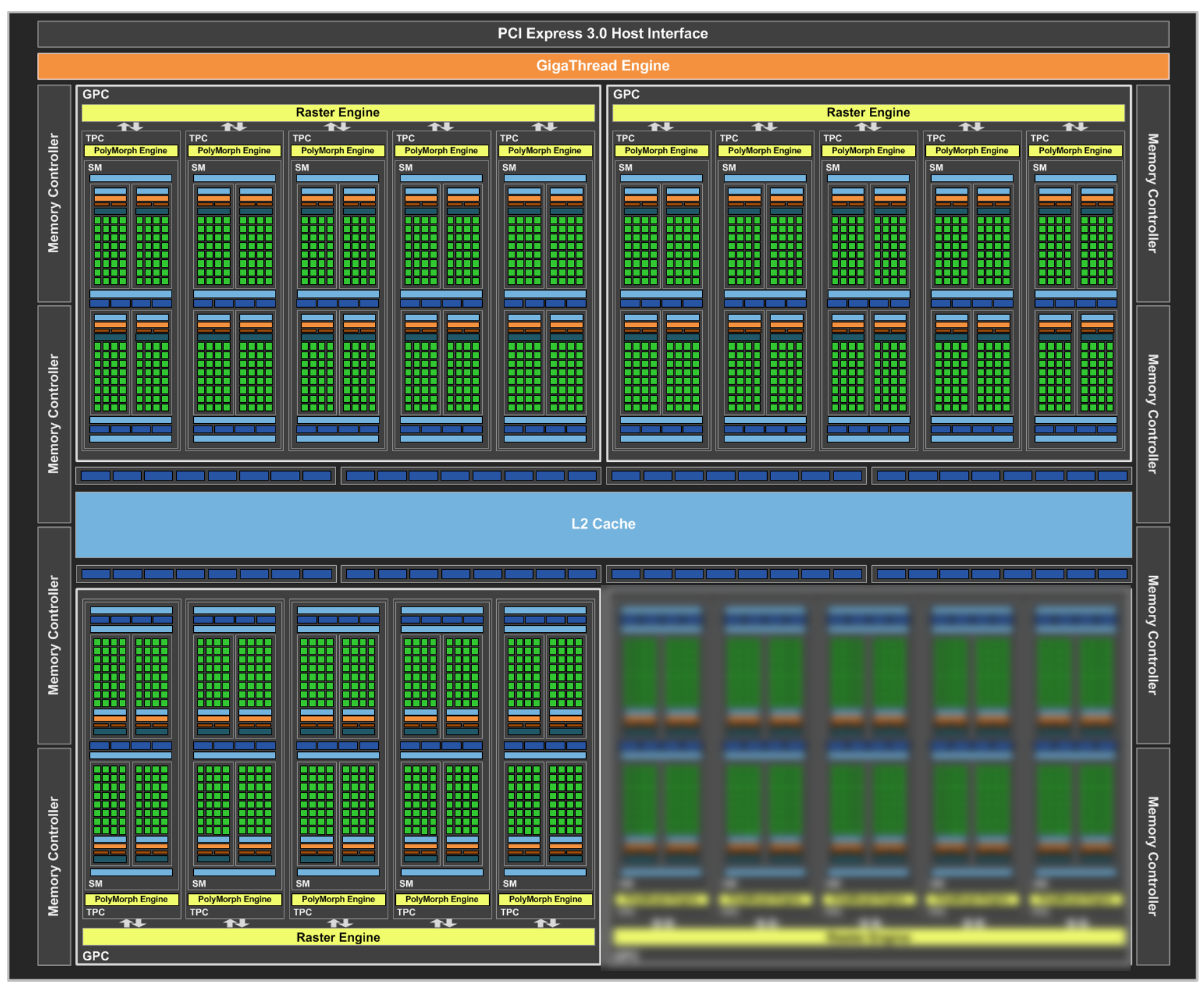 In terms of architecture, Pascal shares many similarities with Maxwell in that both cores contain four graphics processing clusters (GPC) each. The GP104-200, however, has one of the four GPCs disabled in the die. When Fermi was introduced several years ago, the company introduced a pipeline unit called the PolyMorph Engine, each of which (16 at the time) contained a vertex fetcher and tessellator, among other key units. All the way up until Maxwell, this unit was integrated into the SMs, but with Pascal it has been reintroduced into a separate Texture Processing Cluster (TPC) that sits between the Raster Engine and each SM block.